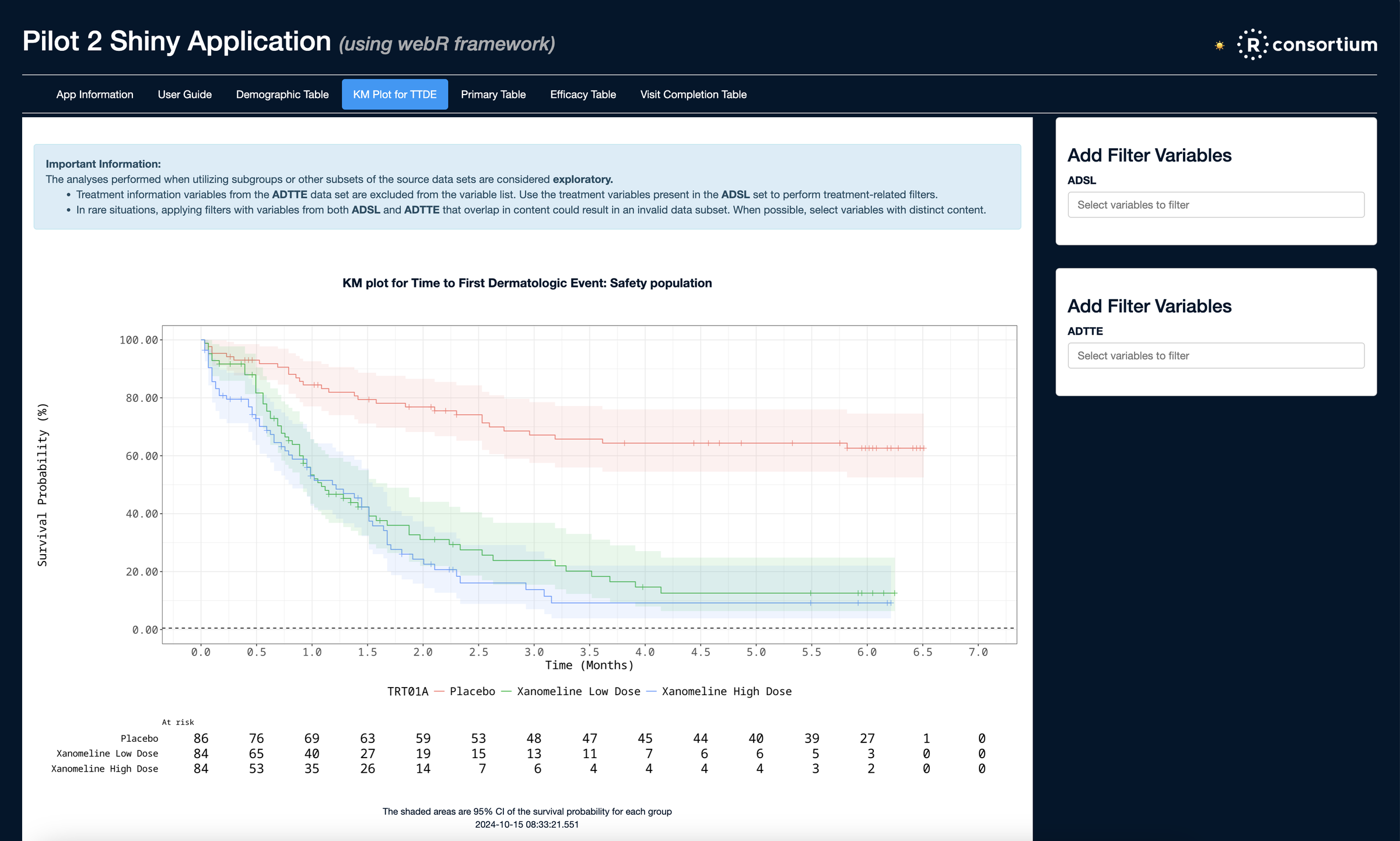 The working group is championing improved practices for R-based submissions of clinical trial data to regulatory bodies for review. With their great work and our steady improvements to Shinylive over time, the group now report that they have reached a new milestone in successfully submitting a pilot R Shiny app , featuring a WebAssembly component with Shinylive, to the FDA for review.