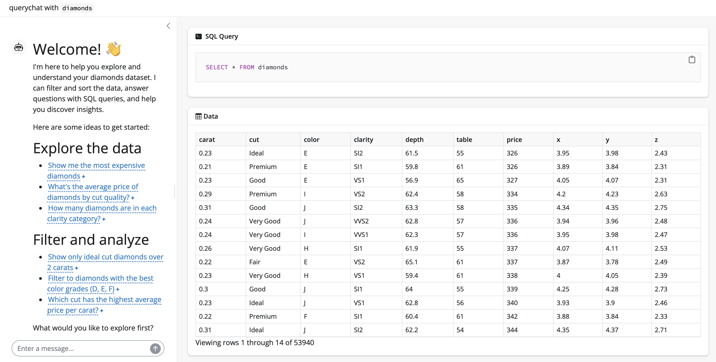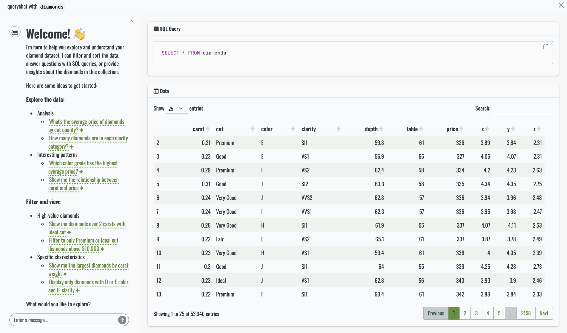 querychat_app(diamonds, client = "claude/claude-sonnet-4-5")